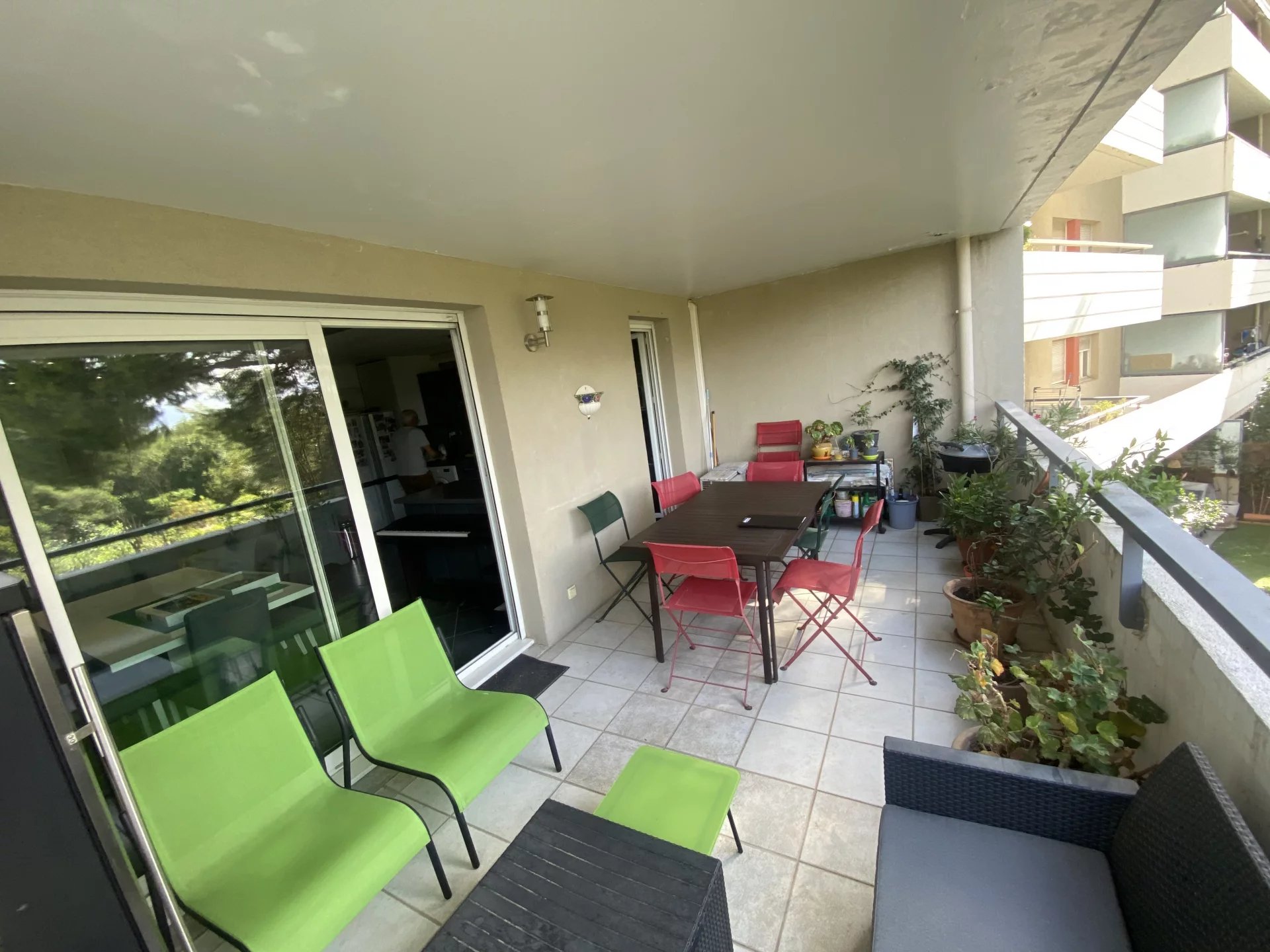 Dans belle résidence calme et sécurisée, magnifique appartement T4 de 84 M² avec une terrasse d'environ 17 M², vue sur verdure, pas de vis à vis, pièce à vivre de 35 M², 3 chambres de belle taille, belle cuisine équipée, salle de bains et salle d'eau, grande place de parking, garage fermé en sous-sol,
